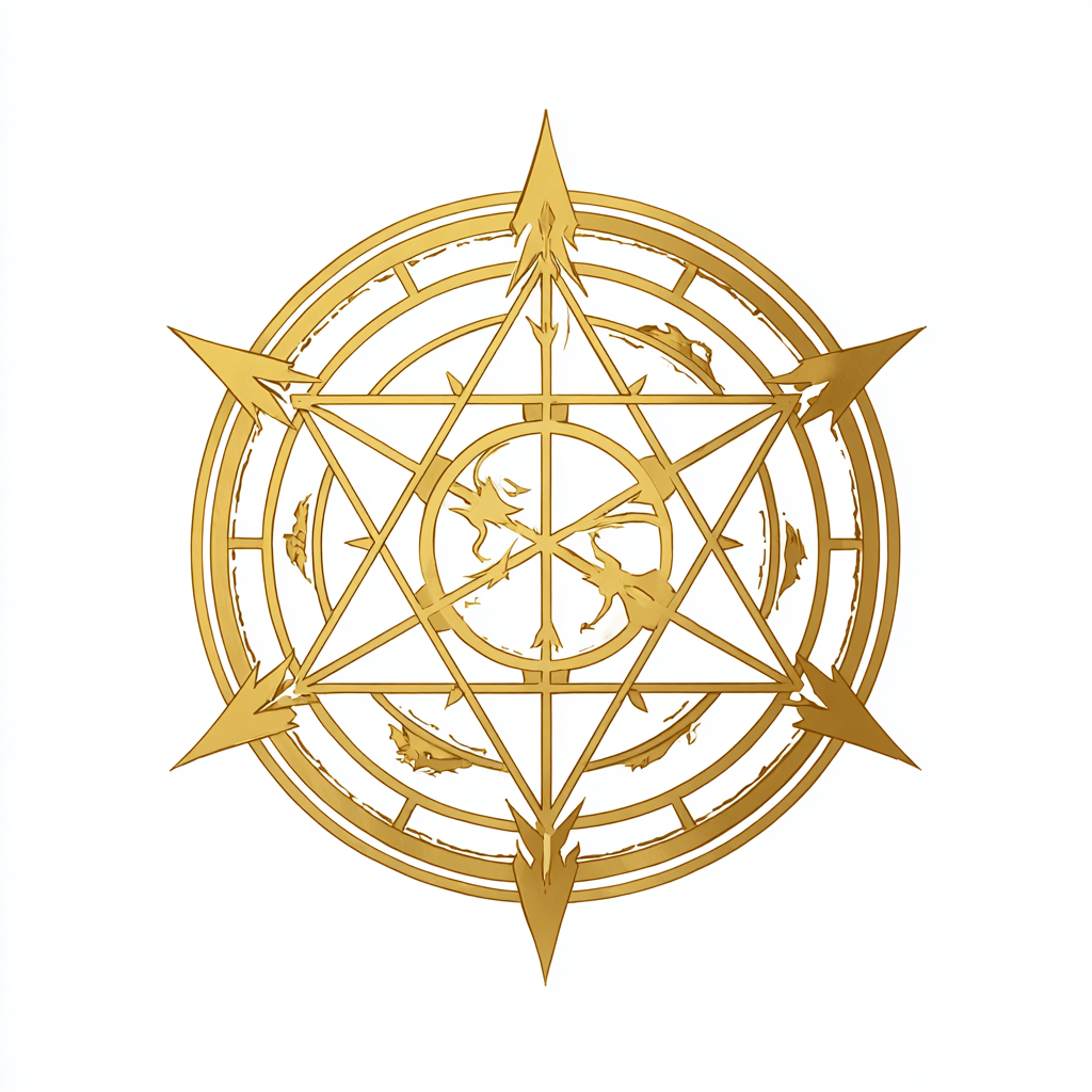 Ce glyphe représente les six éléments ainsi que les deux sous-éléments associés à chacun d’eux.