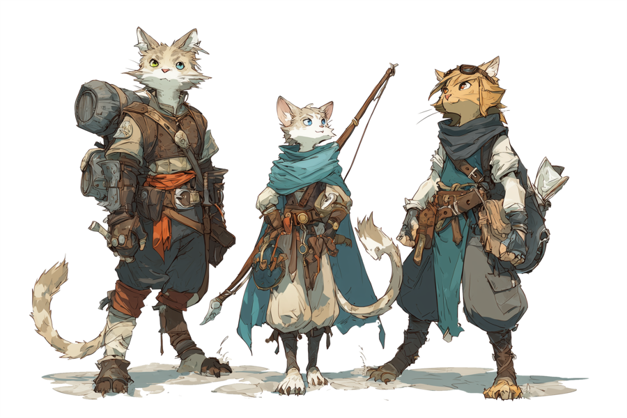 Descendants des félins, les Fel’Auras sont des humanoïdes agiles et gracieux, capables de se déplacer avec une discrétion remarquable et de voir dans l’obscurité. Méfiants par nature, ils préfèrent la tranquillité de la nuit et valorisent profondément les liens familiaux, surtout maternels. Leur société, marquée par la force et l’indépendance des femmes, accorde une grande importance à la filiation et à la transmission du nom maternel.