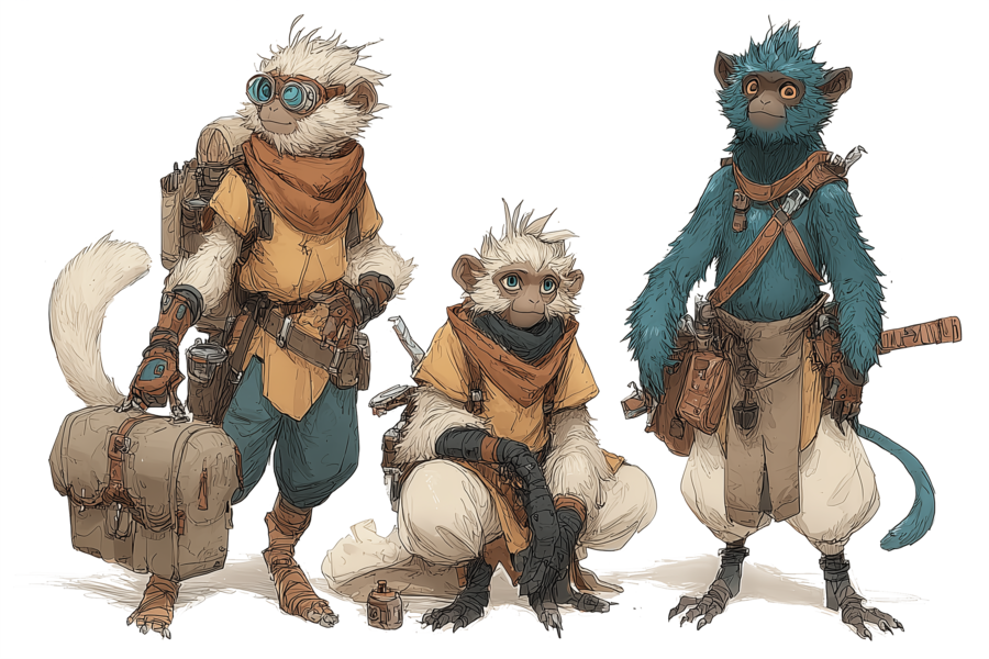 Descendants des singes, les Simauras sont des humanoïdes agiles et poilus, dotés d’une queue préhensile leur offrant une grande aisance dans les déplacements arboricoles. Peuple discret vivant souvent en autarcie forestière, ils se montrent timides face aux autres races, bien que leur curiosité les pousse de plus en plus à explorer le monde. Leur dextérité et leur intelligence en font d’excellents artisans et adaptateurs face aux technologies humaines.